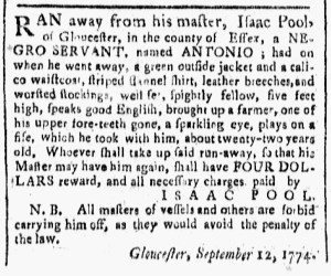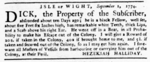 What was advertised in a colonial American newspaper 250 years ago this week?