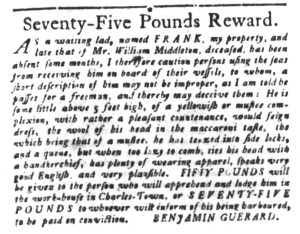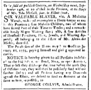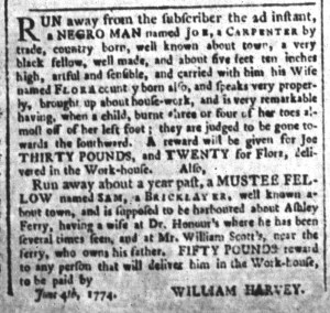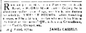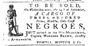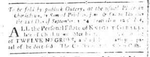 What was advertised in a colonial American newspaper 250 years ago today?