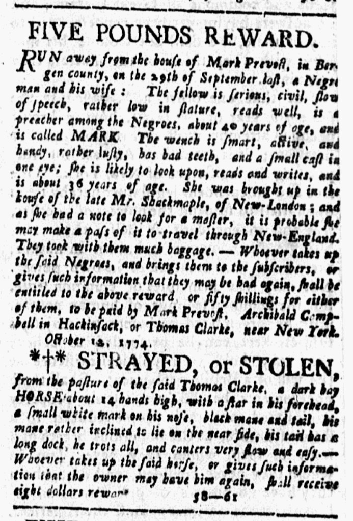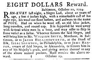 These advertisements appeared in colonial American newspapers 250 years ago today.