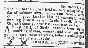 These advertisements also testify to the experiences of enslaved men, women, and children, though readers must consider that those experiences have been remediated through descriptions offered by enslavers rather than enslaved people themselves. Often unnamed in the advertisements, enslaved men, women, and children were not invisible or unimportant in early America.