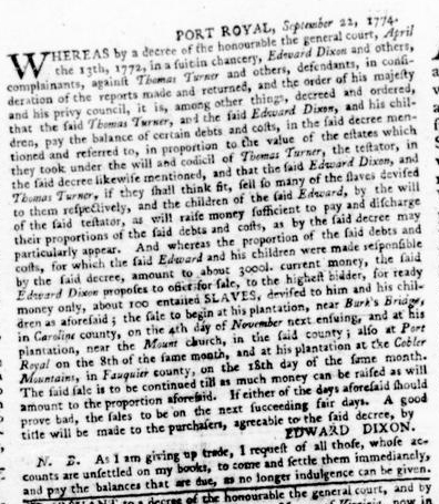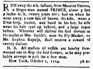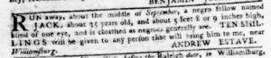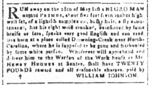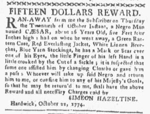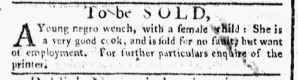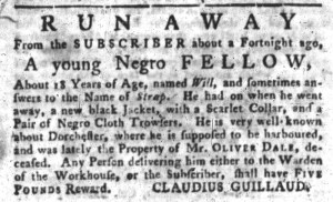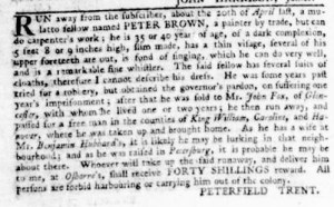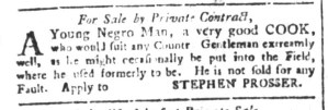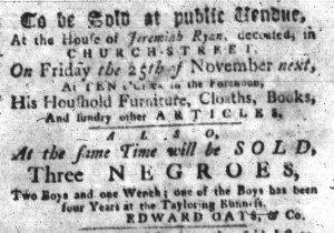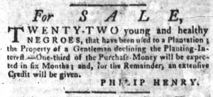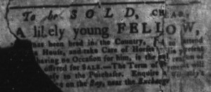 The Slavery Adverts 250 Project chronicles the role of newspaper advertising in perpetuating slavery in the era of the American Revolution. The project seeks to reveal the ubiquity of slavery in eighteenth-century life from New England to Georgia by republishing advertisements about enslaved people – for sale as individuals or in groups, wanted to purchase or for hire for short periods, runaways who liberated themselves, and those who were subsequently captured and confined in jails and workhouses – in daily digests on this site as well as in real time via the @SlaveAdverts250 Twitter feed, utilizing twenty-first-century media to stand in for the print media of the eighteenth century.