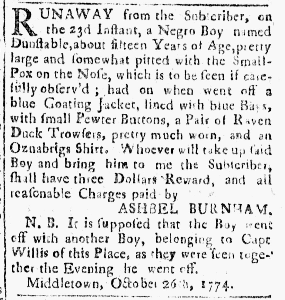 Following his signature, Leavenworth added a brief note aimed at recruiting an employee, a “hardy stout Man … who can be well recommended (for honesty, sobriety, and good nature). A month earlier, he had advertised that a “negro man” who “speaks the Portuguese language, and bit little English” had “let himself to me.” Suspecting that his new employee may have been an enslaved man who fled from his enslaver, Leavenworth placed a notice in the public prints. Not long after that, an advertisement about just such a man in the Connecticut Courant featured an observation that a “Negro answering the above Discription has let himself to Mr. Jesse Leavenworth of New-Haven.” The forthcoming innovation in his ferry service may not have been the only reason Leavenworth sought a new employee. The Black man that he hired as he planned to launch the next stage of his business may have been captured and returned to his enslaver.