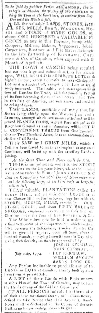 Supplement to the South-Carolina Gazette (October 31, 1774).