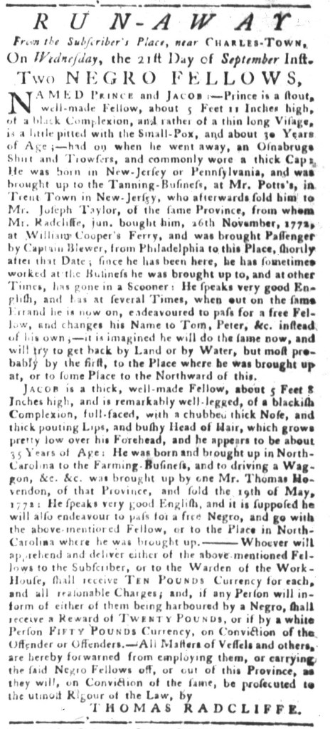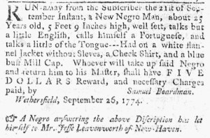 Slavery Advertisements Published October 3, 1774