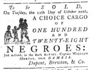 The Slavery Adverts 250 Project chronicles the role of newspaper advertising in perpetuating slavery in the era of the American Revolution. The project seeks to reveal the ubiquity of slavery in eighteenth-century life from New England to Georgia by republishing advertisements about enslaved people – for sale as individuals or in groups, wanted to purchase or for hire for short periods, runaways who liberated themselves, and those who were subsequently captured and confined in jails and workhouses – in daily digests on this site as well as in real time via the @SlaveAdverts250 Twitter feed, utilizing twenty-first-century media to stand in for the print media of the eighteenth century.