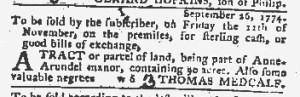 Virginia Gazette [Purdie and Dixon] (October 13, 1774).