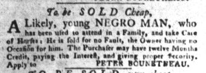 These advertisements appeared in colonial American newspapers 250 years ago today.