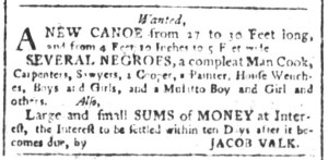 These advertisements appeared in colonial American newspapers 250 years ago today.