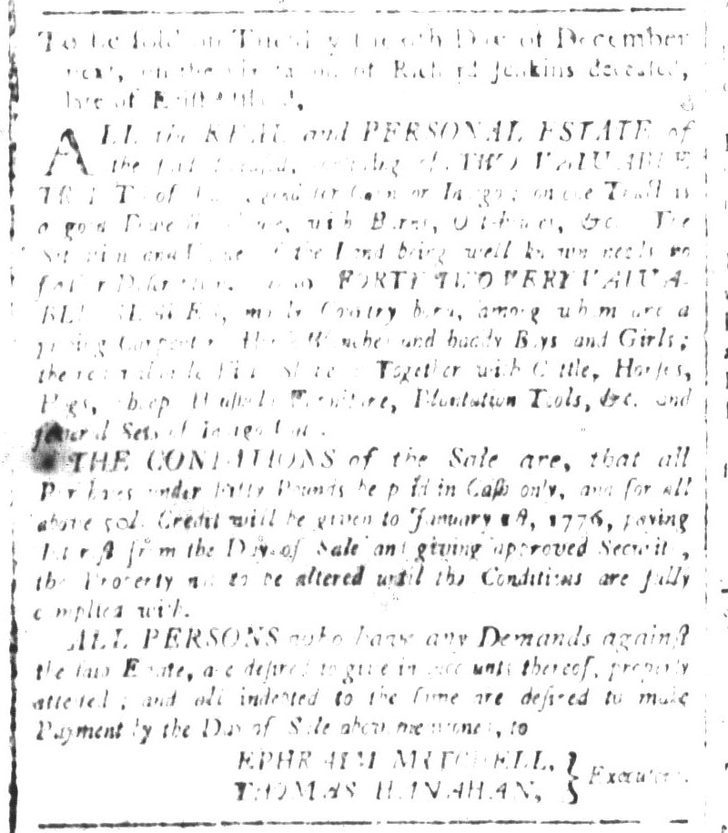 These advertisements appeared in colonial American newspapers 250 years ago today.