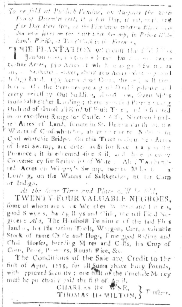 South-Carolina and American General Gazette (November 25, 1774).