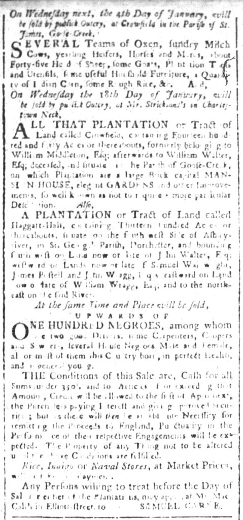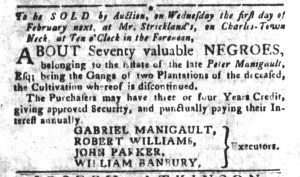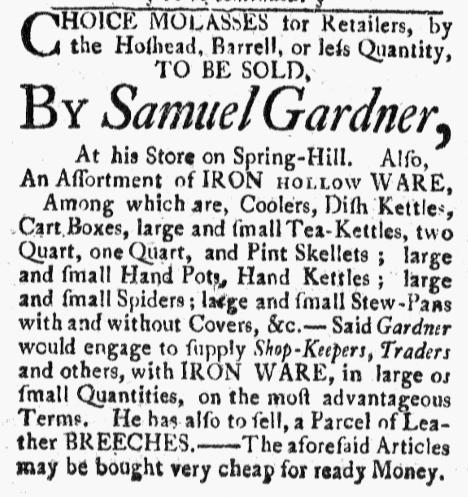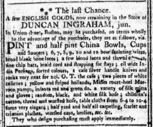 John Carter, the printer of the Providence Gazette, gave that advertisement a privileged place both times that it ran in his newspaper. The first time that it appeared, he inserted it immediately after local news and before other advertisements. Readers likely experienced it as a continuation of news related to the imperial crisis, including updates about other “Donations … to the Town of Boston.” When the advertisement ran a week later, two days before the sale, it was the first item in the first column on the first page, making it nearly impossible for readers to miss. Through the choices he made about the layout of his newspaper, the printer made his own contribution in support of the “common Cause of North-America.”