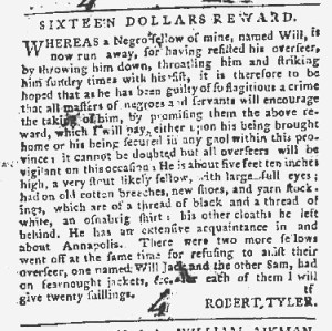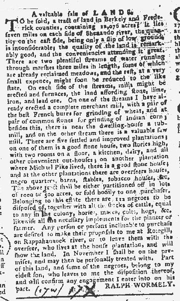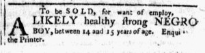What was advertised in a colonial American newspaper 250 years ago today?