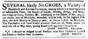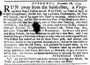 The Slavery Adverts 250 Project chronicles the role of newspaper advertising in perpetuating slavery in the era of the American Revolution. The project seeks to reveal the ubiquity of slavery in eighteenth-century life from New England to Georgia by republishing advertisements about enslaved people – for sale as individuals or in groups, wanted to purchase or for hire for short periods, runaways who liberated themselves, and those who were subsequently captured and confined in jails and workhouses – in daily digests on this site as well as in real time via the @SlaveAdverts250 Twitter feed, utilizing twenty-first-century media to stand in for the print media of the eighteenth century.