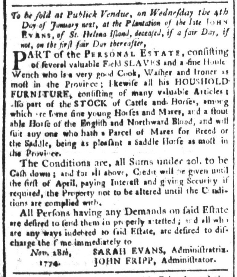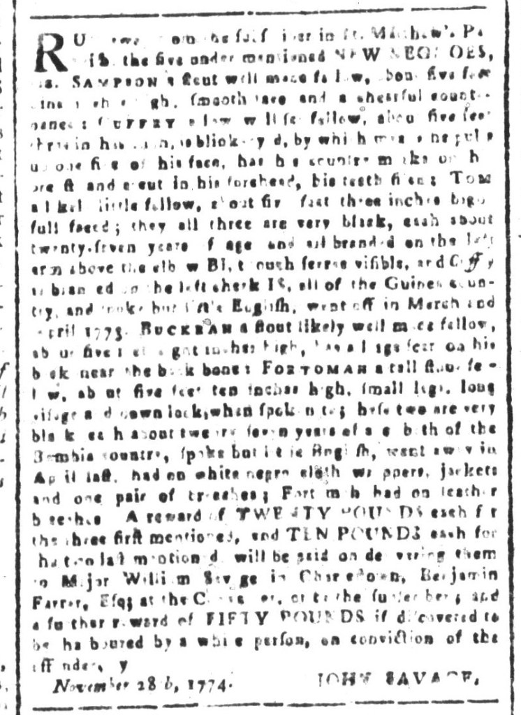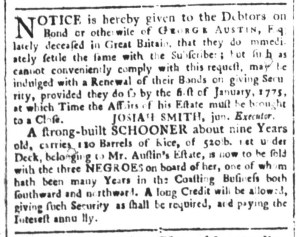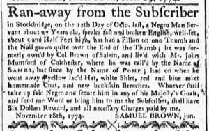 The Slavery Adverts 250 Project chronicles the role of newspaper advertising in perpetuating slavery in the era of the American Revolution. The project seeks to reveal the ubiquity of slavery in eighteenth-century life from New England to Georgia by republishing advertisements about enslaved people – for sale as individuals or in groups, wanted to purchase or for hire for short periods, runaways who liberated themselves, and those who were subsequently captured and confined in jails and workhouses – in daily digests on this site as well as in real time via the @SlaveAdverts250 Twitter feed, utilizing twenty-first-century media to stand in for the print media of the eighteenth century.