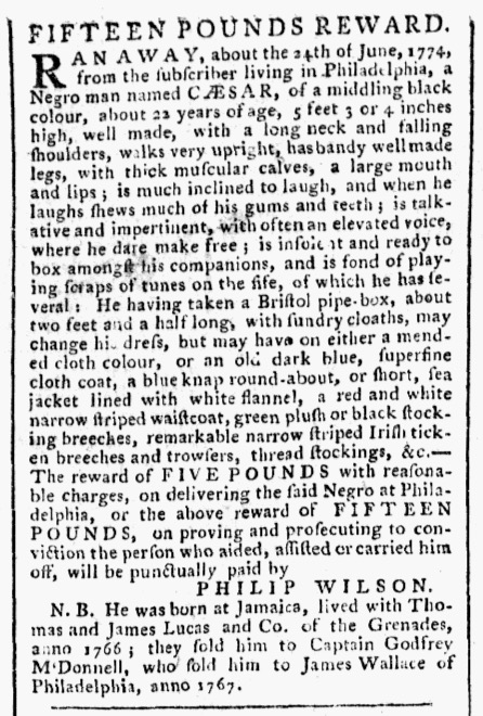 These advertisements appeared in colonial American newspapers 250 years ago today.