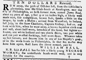 The Slavery Adverts 250 Project chronicles the role of newspaper advertising in perpetuating slavery in the era of the American Revolution. The project seeks to reveal the ubiquity of slavery in eighteenth-century life from New England to Georgia by republishing advertisements about enslaved people – for sale as individuals or in groups, wanted to purchase or for hire for short periods, runaways who liberated themselves, and those who were subsequently captured and confined in jails and workhouses – in daily digests on this site as well as in real time via the @SlaveAdverts250 Twitter feed, utilizing twenty-first-century media to stand in for the print media of the eighteenth century.