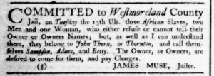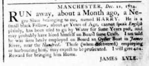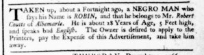 The Slavery Adverts 250 Project chronicles the role of newspaper advertising in perpetuating slavery in the era of the American Revolution. The project seeks to reveal the ubiquity of slavery in eighteenth-century life from New England to Georgia by republishing advertisements about enslaved people – for sale as individuals or in groups, wanted to purchase or for hire for short periods, runaways who liberated themselves, and those who were subsequently captured and confined in jails and workhouses – in daily digests on this site as well as in real time via the @SlaveAdverts250 Twitter feed, utilizing twenty-first-century media to stand in for the print media of the eighteenth century.