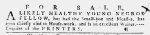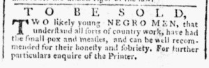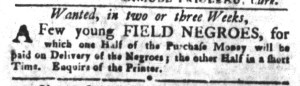 What was advertised in a colonial American newspaper 250 years ago today?
