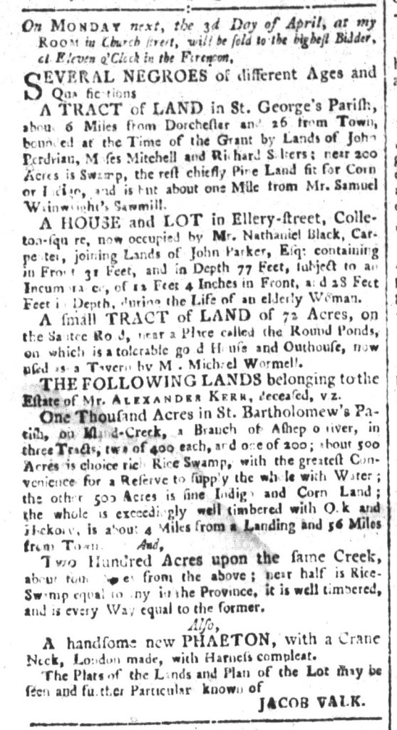 Mrs. Lessley ran a “BOARDING and DAY-BOARDING SCHOOL for YOUNG LADIES” in Charleston in the 1770s. She closed the school for a while, as schoolmasters and schoolmistresses often did for various reasons, but, as spring arrived in 1775, she took to the pages of the South-Carolina and American General Gazette to announce that she planned on “again OPENING” her school “after the Easter Holiday.” She decided to do so, she stated, at the “kind Invitation and Advice” of “Ladies and Gentlemen” familiar with her school, offering an implicit endorsement she hoped would convince prospective pupils and their families.