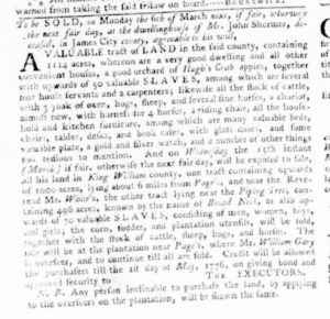 The Slavery Adverts 250 Project chronicles the role of newspaper advertising in perpetuating slavery in the era of the American Revolution. The project seeks to reveal the ubiquity of slavery in eighteenth-century life from New England to Georgia by republishing advertisements about enslaved people – for sale as individuals or in groups, wanted to purchase or for hire for short periods, runaways who liberated themselves, and those who were subsequently captured and confined in jails and workhouses – in daily digests on this site as well as in real time via the @SlaveAdverts250 Twitter feed, utilizing twenty-first-century media to stand in for the print media of the eighteenth century.
