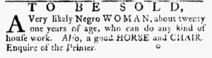 These advertisements appeared in colonial American newspapers 250 years ago today.