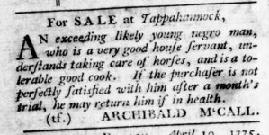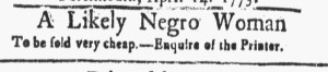 What was advertised in a revolutionary American newspaper 250 years ago this month?