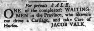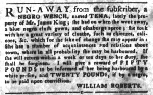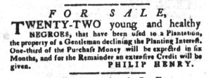 The Slavery Adverts 250 Project chronicles the role of newspaper advertising in perpetuating slavery in the era of the American Revolution. The project seeks to reveal the ubiquity of slavery in eighteenth-century life from New England to Georgia by republishing advertisements about enslaved people – for sale as individuals or in groups, wanted to purchase or for hire for short periods, runaways who liberated themselves, and those who were subsequently captured and confined in jails and workhouses – in daily digests on this site as well as in real time via the @SlaveAdverts250 Twitter feed, utilizing twenty-first-century media to stand in for the print media of the eighteenth century.
