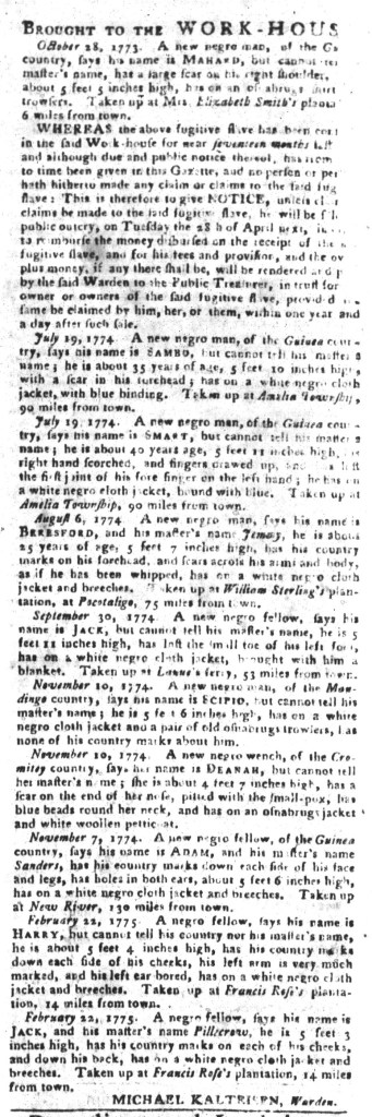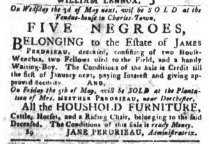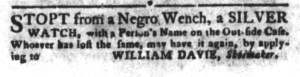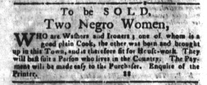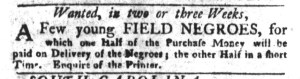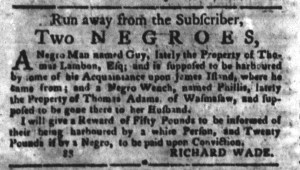 The Slavery Adverts 250 Project chronicles the role of newspaper advertising in perpetuating slavery in the era of the American Revolution. The project seeks to reveal the ubiquity of slavery in eighteenth-century life from New England to Georgia by republishing advertisements about enslaved people – for sale as individuals or in groups, wanted to purchase or for hire for short periods, runaways who liberated themselves, and those who were subsequently captured and confined in jails and workhouses – in daily digests on this site as well as in real time via the @SlaveAdverts250 Twitter feed, utilizing twenty-first-century media to stand in for the print media of the eighteenth century.