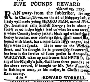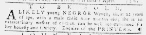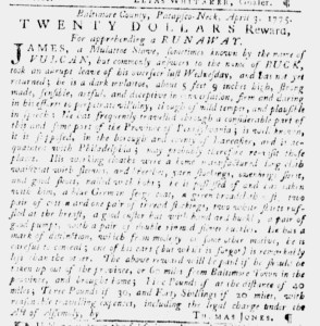 The Slavery Adverts 250 Project chronicles the role of newspaper advertising in perpetuating slavery in the era of the American Revolution. The project seeks to reveal the ubiquity of slavery in eighteenth-century life from New England to Georgia by republishing advertisements about enslaved people – for sale as individuals or in groups, wanted to purchase or for hire for short periods, runaways who liberated themselves, and those who were subsequently captured and confined in jails and workhouses – in daily digests on this site as well as in real time via the @SlaveAdverts250 Twitter feed, utilizing twenty-first-century media to stand in for the print media of the eighteenth century.