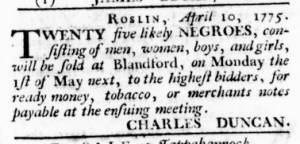 These advertisements appeared in colonial American newspapers 250 years ago today.