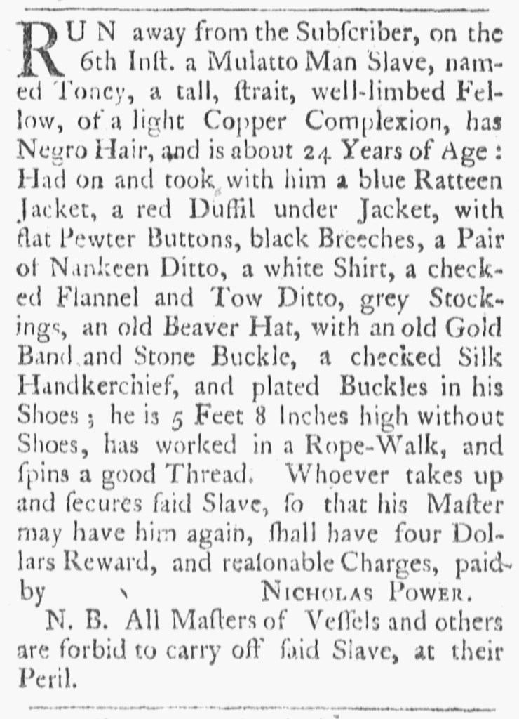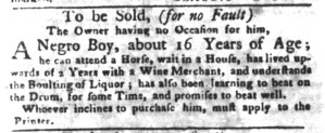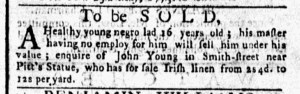 What was advertised in a revolutionary American newspaper 250 years ago today?