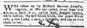 These advertisements appeared in colonial American newspapers 250 years ago today.