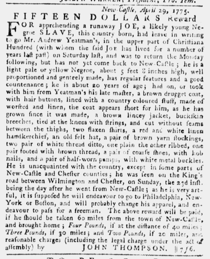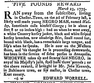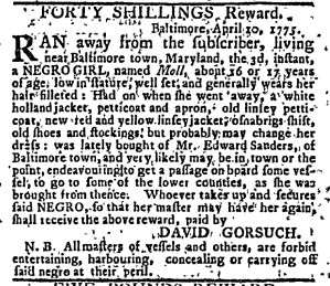 The Slavery Adverts 250 Project chronicles the role of newspaper advertising in perpetuating slavery in the era of the American Revolution. The project seeks to reveal the ubiquity of slavery in eighteenth-century life from New England to Georgia by republishing advertisements about enslaved people – for sale as individuals or in groups, wanted to purchase or for hire for short periods, runaways who liberated themselves, and those who were subsequently captured and confined in jails and workhouses – in daily digests on this site as well as in real time via the @SlaveAdverts250 Twitter feed, utilizing twenty-first-century media to stand in for the print media of the eighteenth century.