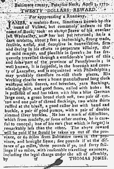 Slavery Advertisements Published June 15, 1775
