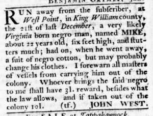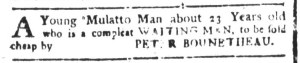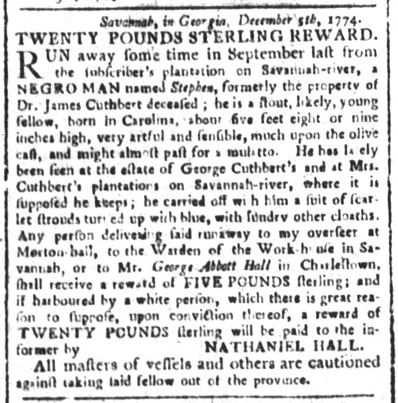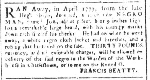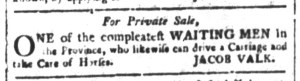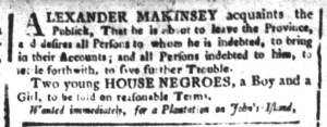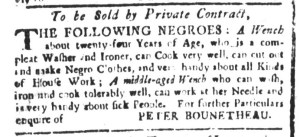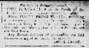 The Slavery Adverts 250 Project chronicles the role of newspaper advertising in perpetuating slavery in the era of the American Revolution. The project seeks to reveal the ubiquity of slavery in eighteenth-century life from New England to Georgia by republishing advertisements about enslaved people – for sale as individuals or in groups, wanted to purchase or for hire for short periods, runaways who liberated themselves, and those who were subsequently captured and confined in jails and workhouses – in daily digests on this site as well as in real time via the @SlaveAdverts250 Twitter feed, utilizing twenty-first-century media to stand in for the print media of the eighteenth century.