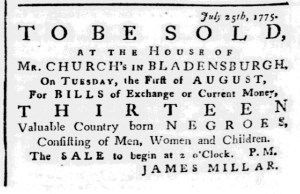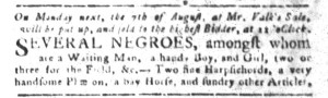 The Slavery Adverts 250 Project chronicles the role of newspaper advertising in perpetuating slavery in the era of the American Revolution. The project seeks to reveal the ubiquity of slavery in eighteenth-century life from New England to Georgia by republishing advertisements about enslaved people – for sale as individuals or in groups, wanted to purchase or for hire for short periods, runaways who liberated themselves, and those who were subsequently captured and confined in jails and workhouses – in daily digests on this site as well as in real time via the @SlaveAdverts250 Twitter feed, utilizing twenty-first-century media to stand in for the print media of the eighteenth century.
