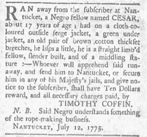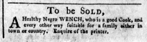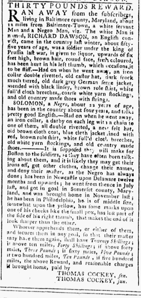 The Slavery Adverts 250 Project chronicles the role of newspaper advertising in perpetuating slavery in the era of the American Revolution. The project seeks to reveal the ubiquity of slavery in eighteenth-century life from New England to Georgia by republishing advertisements about enslaved people – for sale as individuals or in groups, wanted to purchase or for hire for short periods, runaways who liberated themselves, and those who were subsequently captured and confined in jails and workhouses – in daily digests on this site as well as in real time via the @SlaveAdverts250 Twitter feed, utilizing twenty-first-century media to stand in for the print media of the eighteenth century.