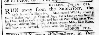 Slavery Advertisements Published August 19, 1775