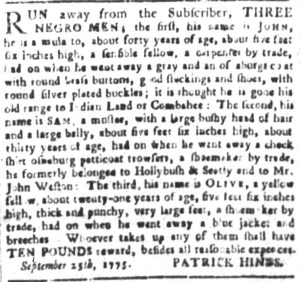 What was advertised in a revolutionary American newspaper 250 years ago today?