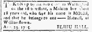 These advertisements appeared in colonial American newspapers 250 years ago today.