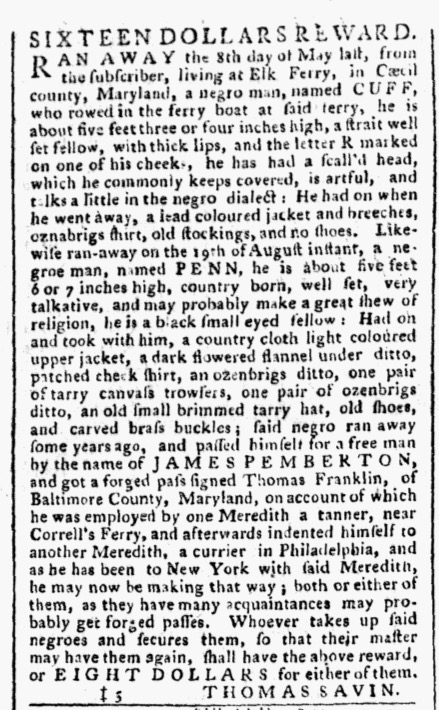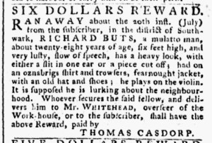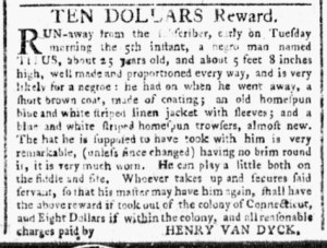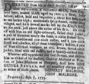 The Slavery Adverts 250 Project chronicles the role of newspaper advertising in perpetuating slavery in the era of the American Revolution. The project seeks to reveal the ubiquity of slavery in eighteenth-century life from New England to Georgia by republishing advertisements about enslaved people – for sale as individuals or in groups, wanted to purchase or for hire for short periods, runaways who liberated themselves, and those who were subsequently captured and confined in jails and workhouses – in daily digests on this site as well as in real time via the @SlaveAdverts250 Twitter feed, utilizing twenty-first-century media to stand in for the print media of the eighteenth century.
