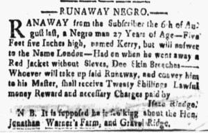 The Slavery Adverts 250 Project chronicles the role of newspaper advertising in perpetuating slavery in the era of the American Revolution. The project seeks to reveal the ubiquity of slavery in eighteenth-century life from New England to Georgia by republishing advertisements about enslaved people – for sale as individuals or in groups, wanted to purchase or for hire for short periods, runaways who liberated themselves, and those who were subsequently captured and confined in jails and workhouses – in daily digests on this site as well as in real time via the @SlaveAdverts250 Twitter feed, utilizing twenty-first-century media to stand in for the print media of the eighteenth century.