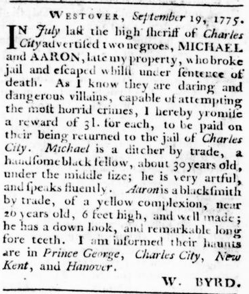 These advertisements appeared in colonial American newspapers 250 years ago today.