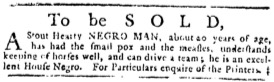 The Slavery Adverts 250 Project chronicles the role of newspaper advertising in perpetuating slavery in the era of the American Revolution. The project seeks to reveal the ubiquity of slavery in eighteenth-century life from New England to Georgia by republishing advertisements about enslaved people – for sale as individuals or in groups, wanted to purchase or for hire for short periods, runaways who liberated themselves, and those who were subsequently captured and confined in jails and workhouses – in daily digests on this site as well as in real time via the @SlaveAdverts250 Twitter feed, utilizing twenty-first-century media to stand in for the print media of the eighteenth century.