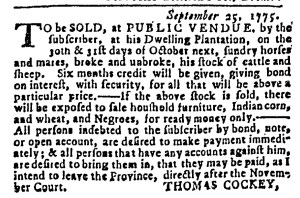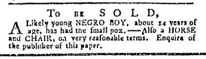 These advertisements appeared in colonial American newspapers 250 years ago today.