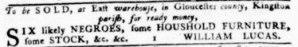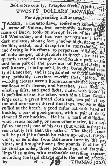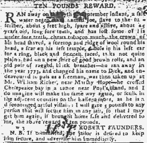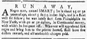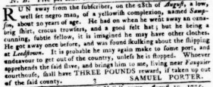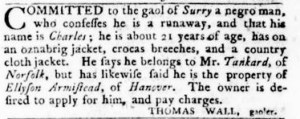 The Slavery Adverts 250 Project chronicles the role of newspaper advertising in perpetuating slavery in the era of the American Revolution. The project seeks to reveal the ubiquity of slavery in eighteenth-century life from New England to Georgia by republishing advertisements about enslaved people – for sale as individuals or in groups, wanted to purchase or for hire for short periods, runaways who liberated themselves, and those who were subsequently captured and confined in jails and workhouses – in daily digests on this site as well as in real time via the @SlaveAdverts250 Twitter feed, utilizing twenty-first-century media to stand in for the print media of the eighteenth century.