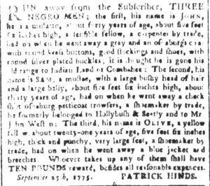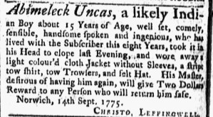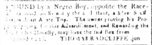 […] For all advertisements about enslaved people that ran in American newspapers published 250 years ago today, visit the Slavery Adverts 250 Project‘s daily digest. […]