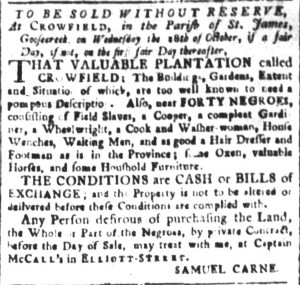 The Slavery Adverts 250 Project chronicles the role of newspaper advertising in perpetuating slavery in the era of the American Revolution. The project seeks to reveal the ubiquity of slavery in eighteenth-century life from New England to Georgia by republishing advertisements about enslaved people – for sale as individuals or in groups, wanted to purchase or for hire for short periods, runaways who liberated themselves, and those who were subsequently captured and confined in jails and workhouses – in daily digests on this site as well as in real time via the @SlaveAdverts250 Twitter feed, utilizing twenty-first-century media to stand in for the print media of the eighteenth century.