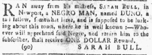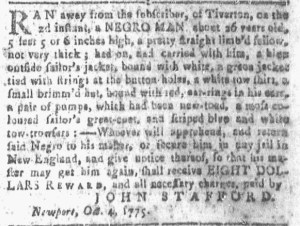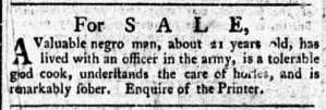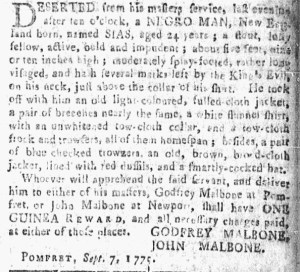 The Slavery Adverts 250 Project chronicles the role of newspaper advertising in perpetuating slavery in the era of the American Revolution. The project seeks to reveal the ubiquity of slavery in eighteenth-century life from New England to Georgia by republishing advertisements about enslaved people – for sale as individuals or in groups, wanted to purchase or for hire for short periods, runaways who liberated themselves, and those who were subsequently captured and confined in jails and workhouses – in daily digests on this site as well as in real time via the @SlaveAdverts250 Twitter feed, utilizing twenty-first-century media to stand in for the print media of the eighteenth century.
