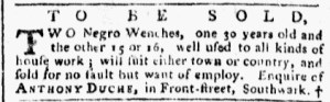 These advertisements appeared in colonial American newspapers 250 years ago today.
